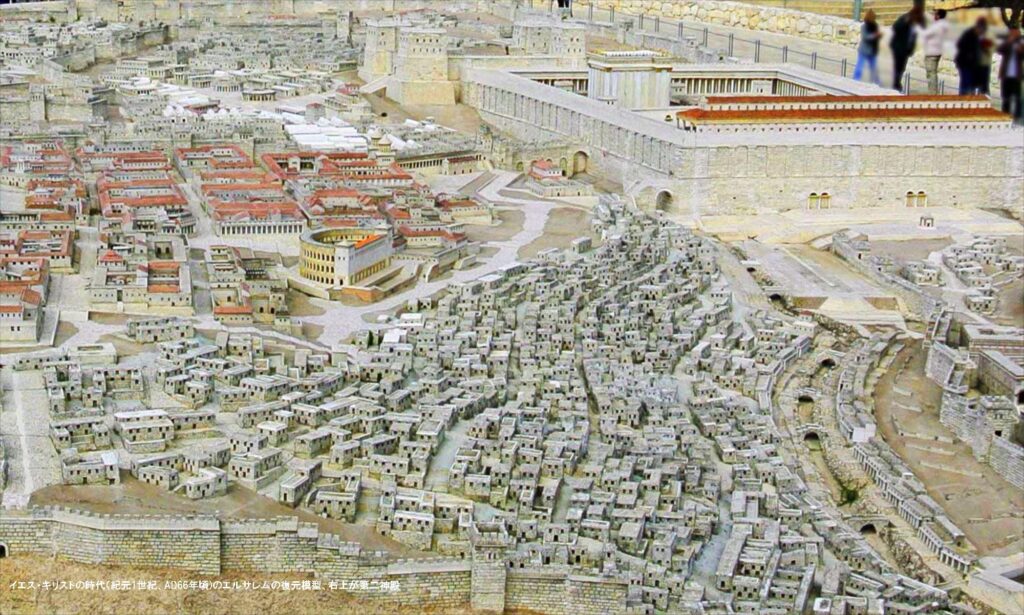 ナザレに再現されたイエスの時代(2000年前)のナザレ村。当時は、数百人の小さな村だったとのこと。ナザレからエルサレムまでは約150㎞の道のり、一日30km歩いたとしても約5日かかります。