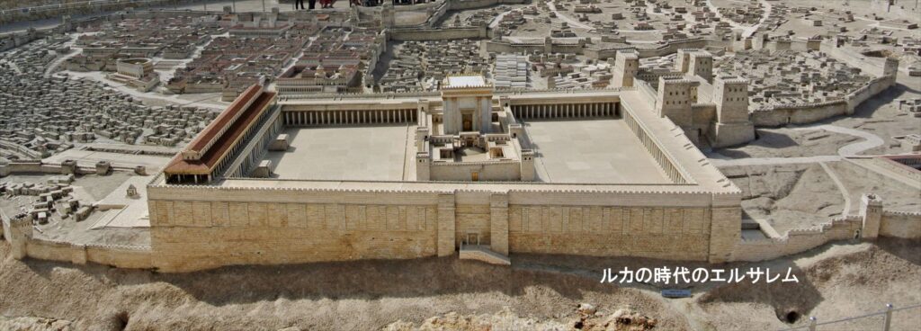 上の写真は、紀元60年頃のエルサレムを再現した50分の1の模型です。イスラエルのエルサレム博物館に展示されています。(2013年の訪問時に撮影)
